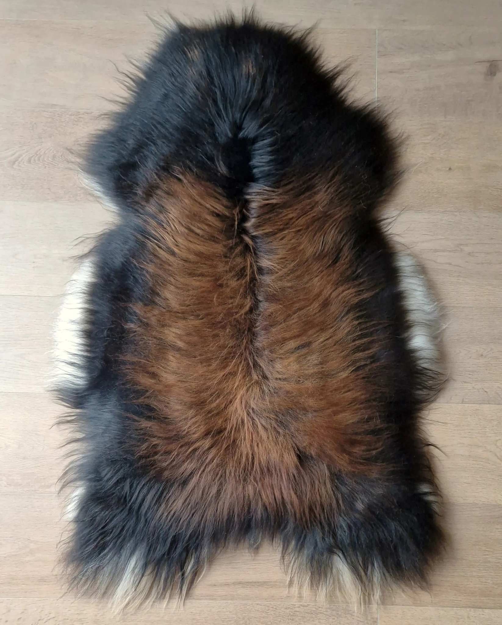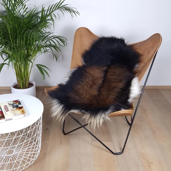 Kolmevärviline naturaalne Islandi lambanahk on pilkupüüdev sisustuselement, mis toob ruumi põhjamaist iseloomu. Tumedad toonid koos soojade pruunide ja heledamate nüanssidega sobivad ideaalselt nii skandinaavialikku, modernsesse kui ka looduslähedasse interjööri.